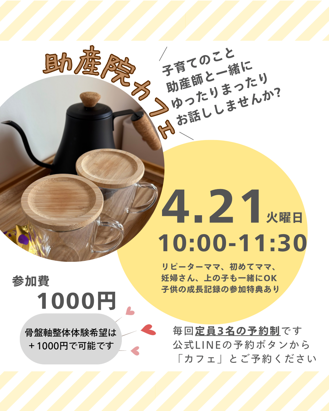 あ!助産院カフェというお茶しながら気軽に子育て相談会もありますので